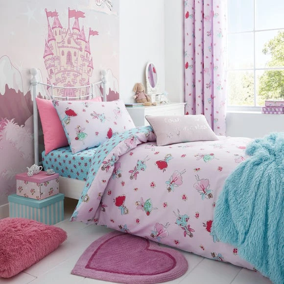 Catherine Lansfield Fairies Easy Care Fitted Sheet Fitted Sheets, Polycotton, Light Pink