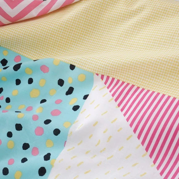 Let your room stand out with our Bold Geo designed duvet cover and pillowcase set. Fully reverse the set to reveal a dotty design which makes a perfect quick style swap. An easy care 100% cotton material has been used which makes the bold geo duvet cover set soft to sleep under. The set is fully machine washable.