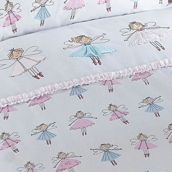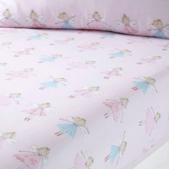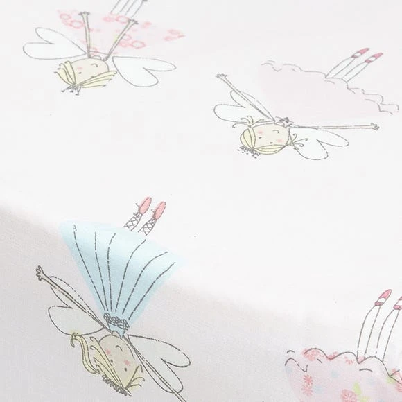 Featuring a fairy print in pink and blue on a light pink background, this fitted sheet is crafted from soft polycotton and available in a choice of sizes.