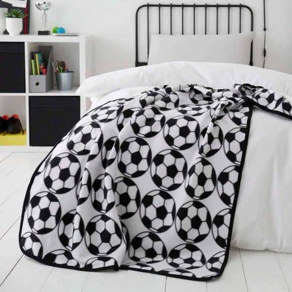 Featuring a black and white football print and a black border, our fleece is made from soft, durable materials and is machine washable.