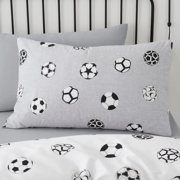 Perfect for football lovers, this reversible football bedding set has two fun and sporty designs your child can choose from. In a grey and white colourway, this bedding set would compliment any bedroom beautifully. Crafted from polycotton this bedding is soft, durable, and machine washable. Other coordinating bedding accessories are also available.