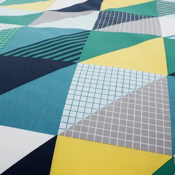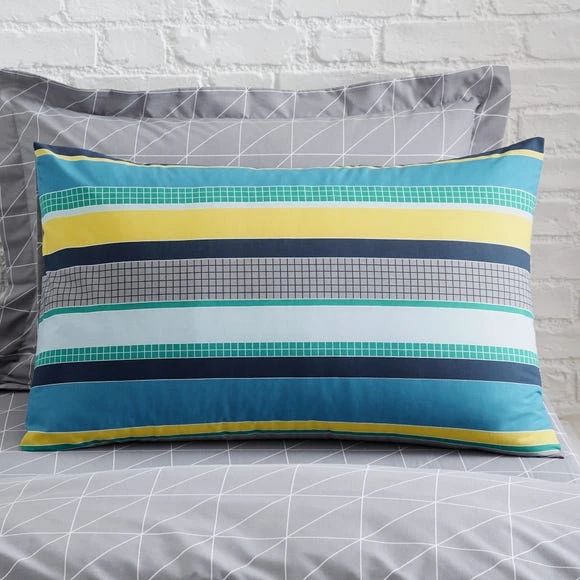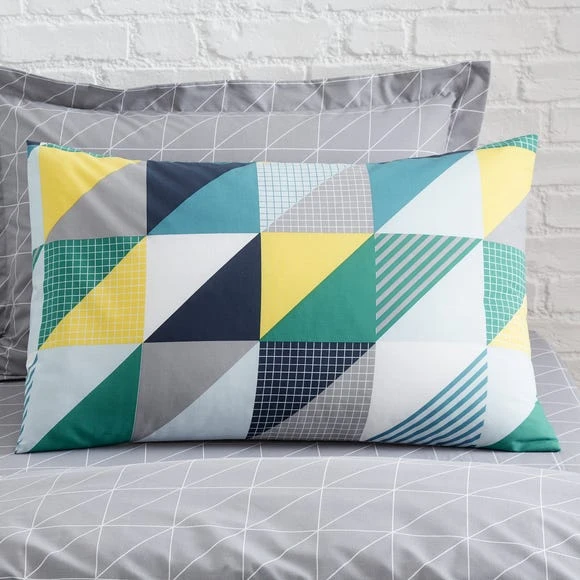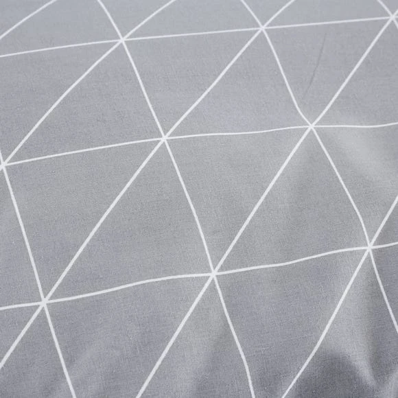 Machine washable for easy care, this eye-catching geometric and stripe designed reversible bedding comes as a twin pack in sizes cot bed, single (both include two pillowcases) and double (includes four pillowcases). Coordinating geometric design products available including curtains and fitted sheets.