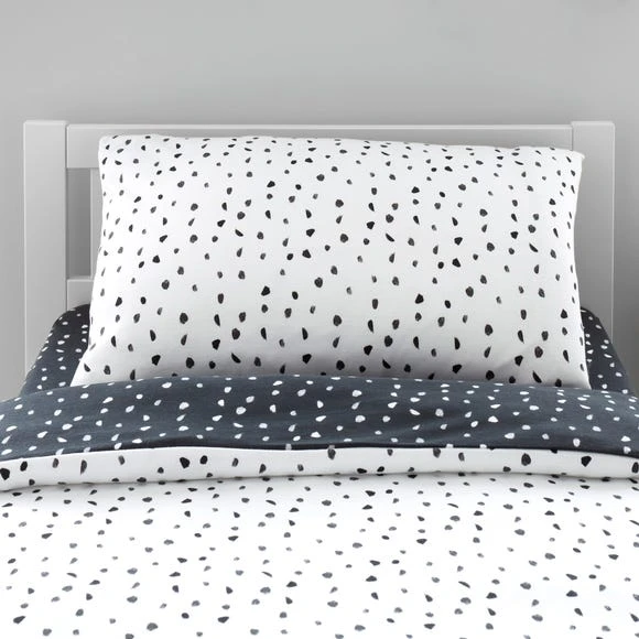 Boasting a modern jersey monochrome design, this duvet cover and pillowcase set is perfect for adding a stylish and contemporary touch to your child’s bedroom. With a fully reversible design, you can choose between two stunning prints. Made from 100% cotton, this bedding set is soft, durable, and machine washable.