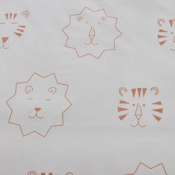 Add an element of cosy and cute with this printed duvet set. With two sides of fun jungle outline illustrations, this adorable set will brighten up any room. Enjoy the convenience of transforming and refreshing a room, with one side featuring smaller illustrations and the other with larger characters but still with the same theme running throughout. This polycotton set is machine washable and available in a range of sizes.