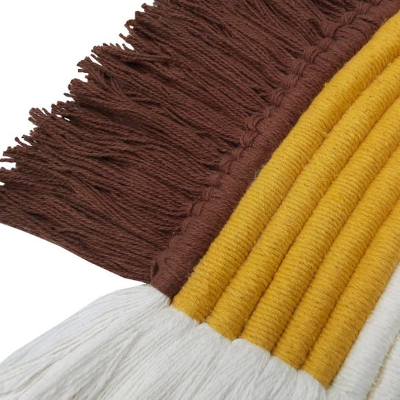 Perfect for adding a fun touch to your little one’s room, this lion fringed wall hanging adds a pop of colour to any wall. Boasting a rustic macrame design, this textured wall hanging is beautiful, durable and stylish. This wall hanging features a loop at the back for easy hanging.