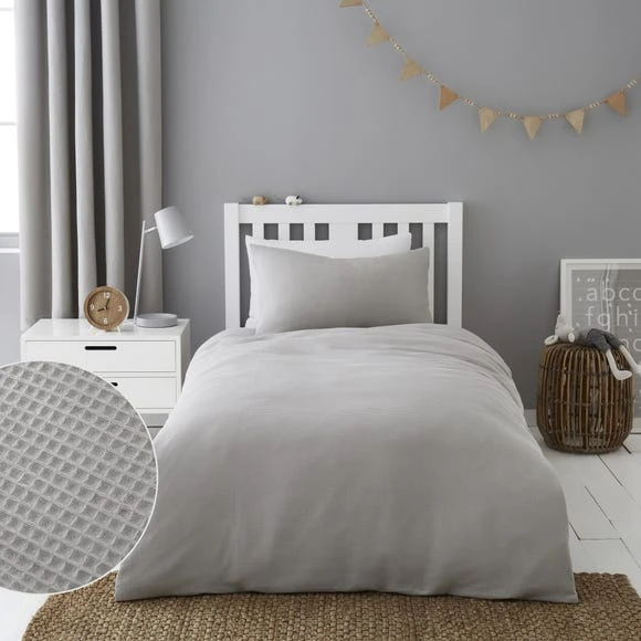 Dunelm Mini Waffle Grey 100% Cotton Duvet Cover and Pillowcase Set Duvet Cover Sets, Light Grey, Little Safari