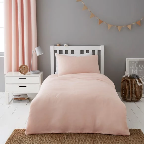 This soft mini waffle-textured bedding is perfect for adding a touch of colour to your child’s bedroom. Available in 4 stylish colourways you can find the perfect bedding set to compliment your little one’s bedrooms. Made from 100% cotton, this bedding set is soft, durable and machine washable. Matching curtains are also available.