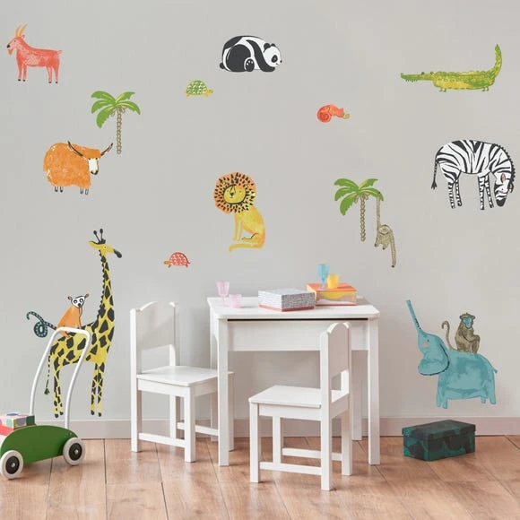 Featuring a variety of multicoloured wild animals and trees, the My World wall stickers are an ideal finishing touch for a kids bedroom or nursery. Easy to apply, the high quality wall stickers will look great when used to decorate a bedroom. Self adhesive and fully removable.