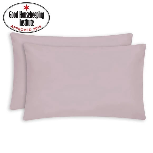 Crafted from a durable polycotton blend, this pack of two standard pillowcases combines long lasting quality with comfort and softness. Designed in a pink colourway, these pillowcases are from the non-iron plain dye collection and are machine washable for easy care.