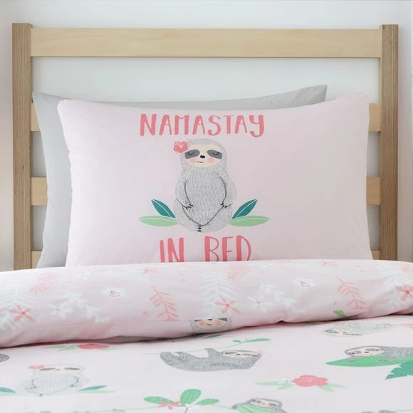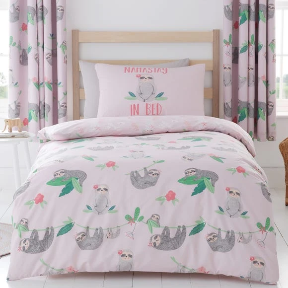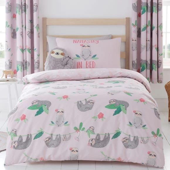 Boasting a colourful animal print, this pink sloth duvet cover and pillowcase set is perfect for adding a touch of fun to your children’s bedroom. With a reversible design, you can choose between two designs for your child’s bed. This set is machine washable and is available in a range of sizes. Other matching curtains and bedding are also available.