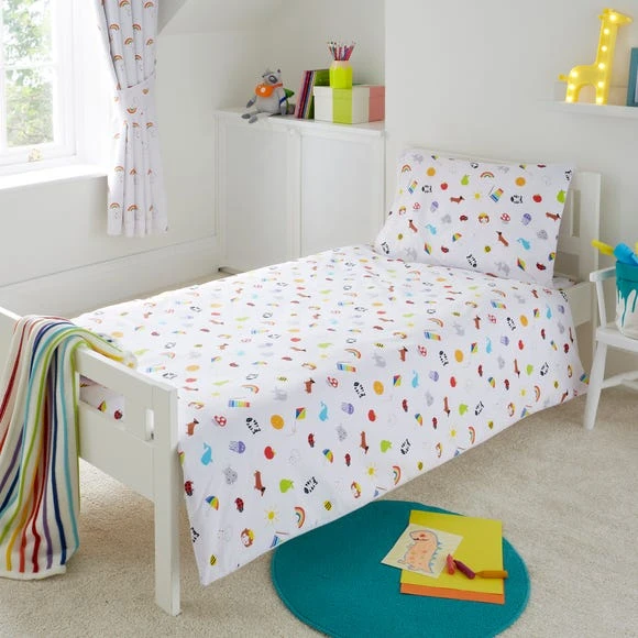 Dunelm Rainbow 100% Cotton Cot Bed Duvet Cover and Pillowcase Set Reversible, Duvet Cover Sets, Patterned