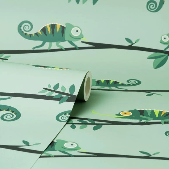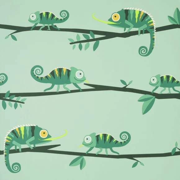 Perfect for your little one’s bedroom, this novelty wallpaper features rainforest chameleons climbing along jungle vines. Easy to hang, just paste the wall!