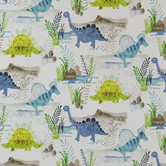 This Jurassic inspired wallpaper features various dinosaurs surrounded by leaves and rocks. With a matt finish, the 10-metre roll is made from wipeable paper.