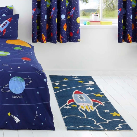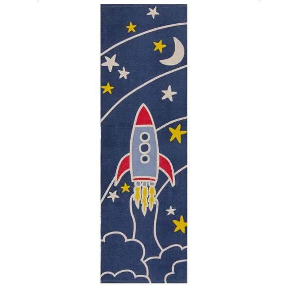 Blast off with the Space Rocket Runner, perfect for transporting your little one to outer space, on the playful rocket design. The 100% cotton composition creates a lightweight versatile rug that can be moved around as your little one moves. The low-profile style, means that the Space Rocket Runner can be used in high-traffic areas, perfect for lots of play. We love using the Space Rocket Runner in nurseries, playrooms and bedrooms for adding some cosmic style.