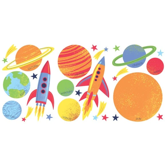 These space themed wall stickers are self adhesive, easy to apply and repositionable for you to create a fun wall art design.