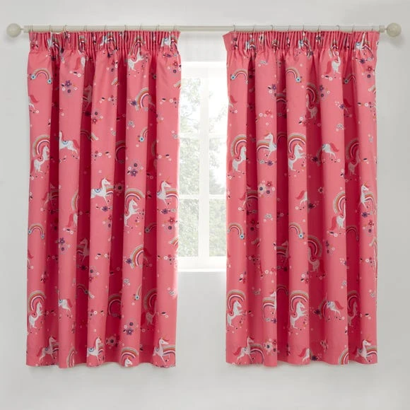 Dunelm Unicorn Blackout Pencil Pleat Kids Curtains Pencil Pleat Curtains, Pink, Polycotton