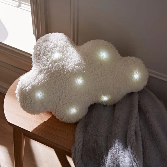 Dunelm White Light Up Cloud Cushion Kids Cushion, Polyester