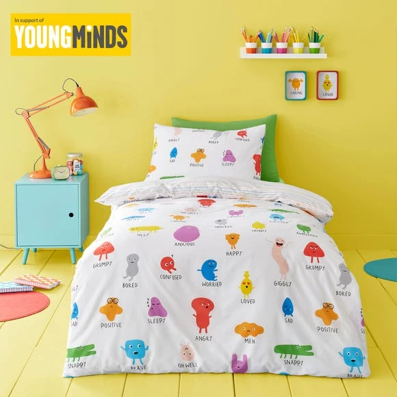 In support of the charity Young Minds, we have created this stunning bedding set with a beautiful reversible face design. This bedding features different emotion characters to help your child understand the different emotions people can feel and how to express these feelings. Crafted from 100% cotton, this bedding set is soft, durable, and machine washable. Other coordinating bedding accessories are also available.