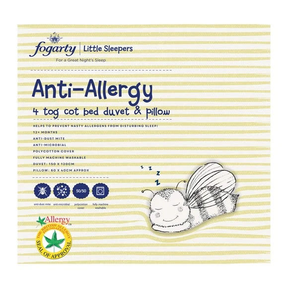 Fogarty Little Sleepers Anti Allergy 4 Tog Cot Bed Duvet and Pillow Set White, Cotton, Duvets