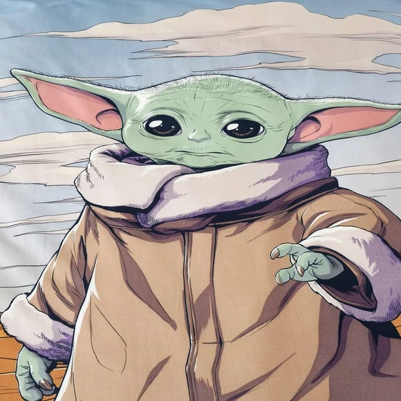 Add a touch of adventure to your child’s bedroom with this Star Wars Baby Yoda Duvet Cover and Pillowcase Set. With a reversible design, you can choose between two cute baby Yoda designs. Made from 100% cotton this bedding set is soft, durable and machine washable.