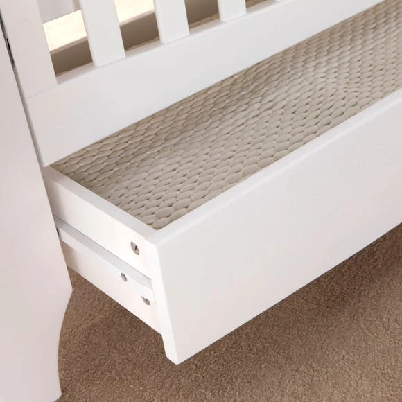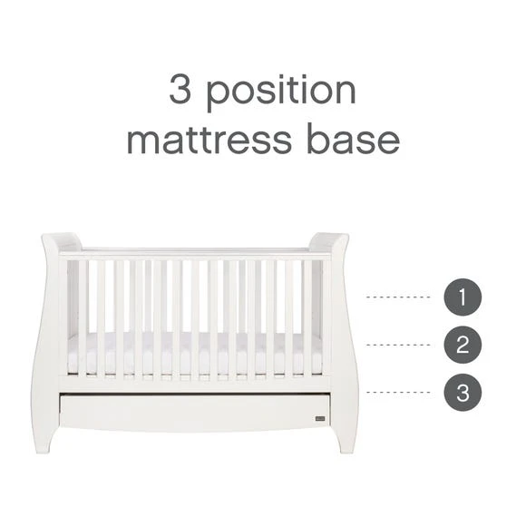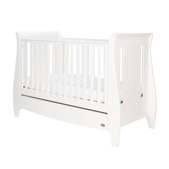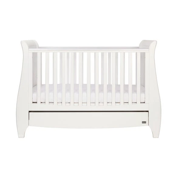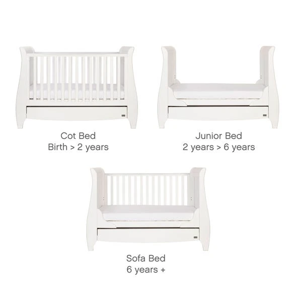 The Lucas is a stylish cot bed made from solid wood with a contemporary look and a sleigh design. The Lucas grows with your little one easily converting into a junior or day bed.
